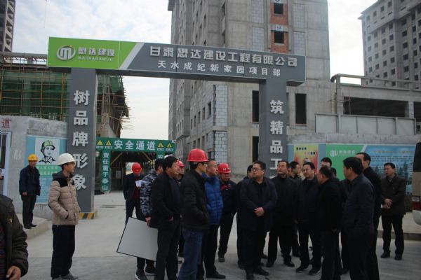 2016年12月7日上午,天水市副市長何東帶領(lǐng)市直有關(guān)部門,來甘肅懋達建設(shè)工程有限公司承建的天水成紀(jì)新家園棚戶區(qū)改造項目一期工程五標(biāo)段檢查指導(dǎo)工作。