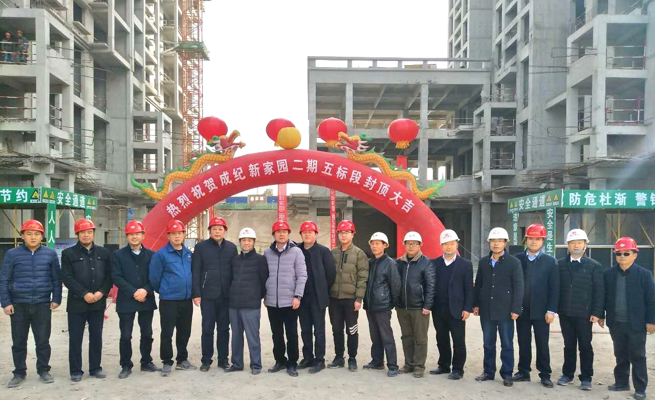 12月8日上午,成紀(jì)新家園項(xiàng)目二期工程五標(biāo)段現(xiàn)場(chǎng)橫幅高掛、人聲鼎沸、喜氣洋洋。11時(shí),在建設(shè)、監(jiān)理、各標(biāo)段項(xiàng)目經(jīng)理及公司領(lǐng)導(dǎo)的共同見(jiàn)證下,天水市成紀(jì)新家園棚戶(hù)區(qū)改造項(xiàng)目二期工程五標(biāo)段26#樓順利封頂。