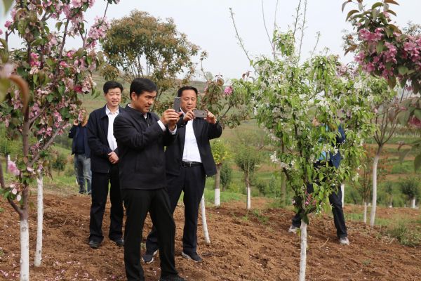 4月16日,隴南市委書記孫雪濤,在市委常委、政法委書記張慶宏,徽縣委書記王強,縣委副書記、政府縣長王俊強,縣委副書記馬學文的陪同下,深入甘肅泓盛生態(tài)農(nóng)林發(fā)展有限公司水陽鎮(zhèn)兩埡苗木基地調(diào)研產(chǎn)業(yè)扶貧工作。