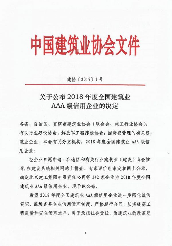 全國建筑業(yè)AAA級(jí)信用企業(yè)是由各地區(qū)建筑業(yè)協(xié)會(huì)推薦,中國建筑業(yè)協(xié)會(huì)專家評(píng)價(jià)組審定,體現(xiàn)國家建筑業(yè)企業(yè)綜合能力的權(quán)威榮譽(yù),通過對(duì)企業(yè)基本素質(zhì)、經(jīng)營及財(cái)務(wù)能力、管理能力、競(jìng)爭(zhēng)力等五方面指標(biāo)進(jìn)行考核而最終審定的行業(yè)內(nèi)誠信經(jīng)營的標(biāo)桿企業(yè)。旨在健全我國建筑業(yè)的信用體系,加強(qiáng)建筑行業(yè)自律,增強(qiáng)我國建筑從業(yè)者的信用意識(shí),切實(shí)提高工程質(zhì)量和安全管理水平,推動(dòng)我國建筑業(yè)持續(xù)健康發(fā)展,在業(yè)內(nèi)具有較強(qiáng)影響力。據(jù)悉,建筑業(yè)企業(yè)信用等級(jí)分為AAA、AA、A、B、C三等五級(jí),其中AAA級(jí)信用企業(yè)等級(jí)最高。此次年度評(píng)審中,甘肅省共有3家建筑企業(yè)獲評(píng)“AAA級(jí)”信用企業(yè)。