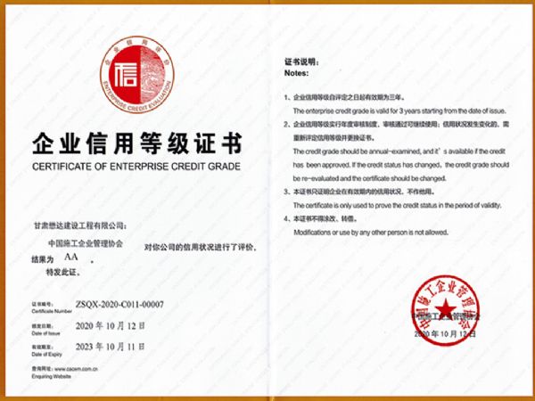 信用等級證書是市場經(jīng)營、評優(yōu)選優(yōu)等活動的重要依據(jù)。獲評中國施工企業(yè)管理協(xié)會AA級信用企業(yè),充分肯定了懋達(dá)建設(shè)誠信經(jīng)營、創(chuàng)新發(fā)展的綜合實(shí)力,為企業(yè)持續(xù)健康發(fā)展打下了堅實(shí)的基礎(chǔ)。