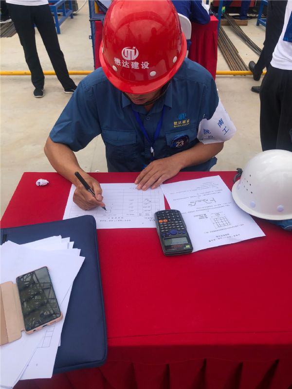 競賽依據(jù)中華人民共和國鋼筋工國家職業(yè)資格標準(中級),實行理論知識考試內容主要包括建筑材料、建筑識圖、操作工藝、質量驗收規(guī)范及安全知識等,考試占總分30%。實際操作比賽內容為鋼筋配料和鋼筋綁扎,實際操作考核占總分 70%,總分為100分。共評選出3個一等獎、6個二等獎、11個三等獎、5個優(yōu)秀組織獎。甘肅懋達建設工程有限公司作為隴南市唯一隊伍代表市總工會參賽,參賽選手應代江、吳進憑借過硬的技術本領和穩(wěn)健的現(xiàn)場操作分別榮獲三等獎。