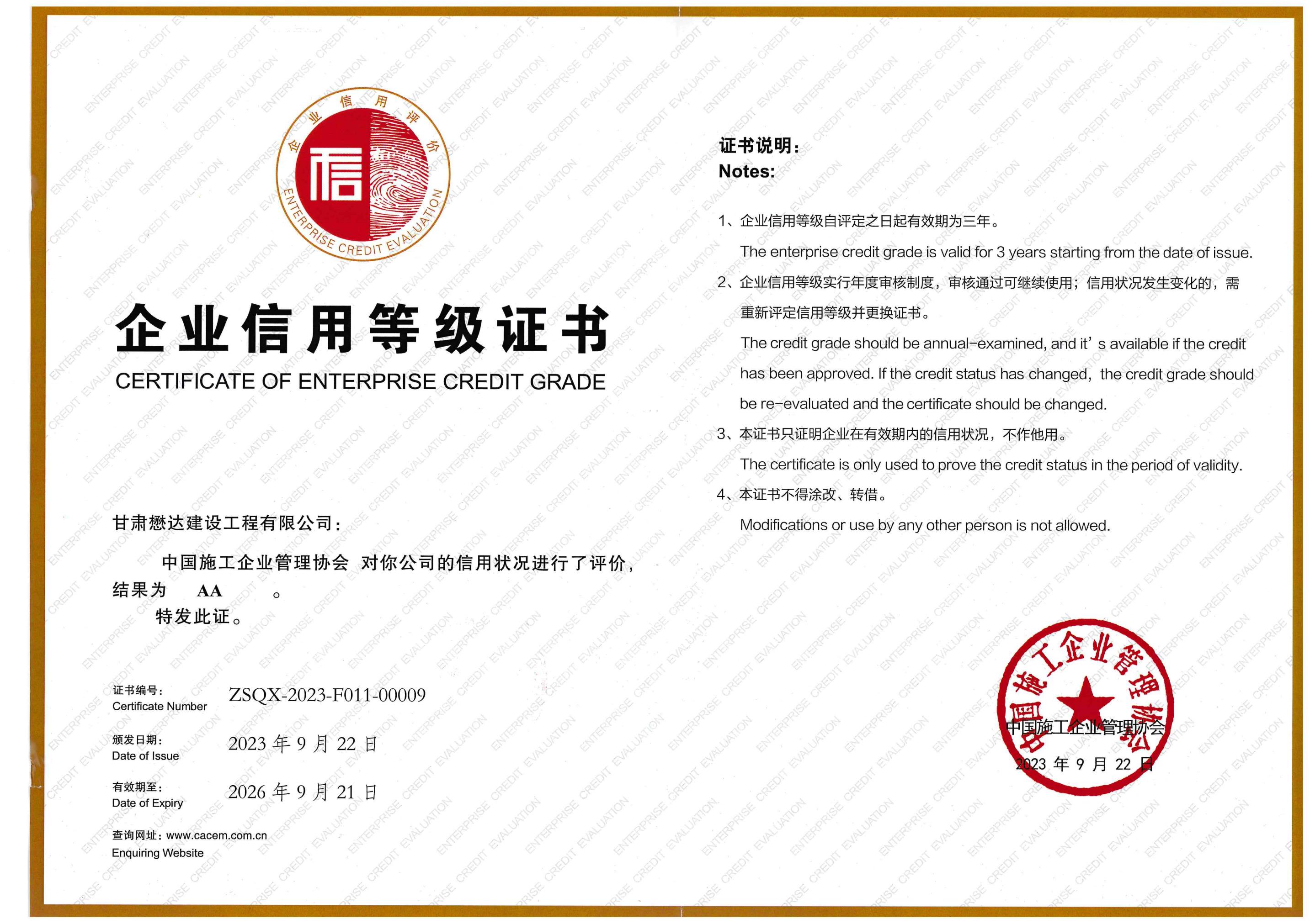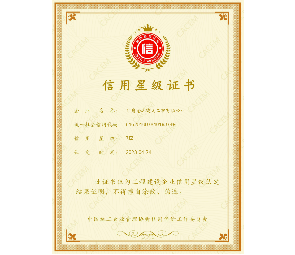 近日,中國(guó)施工企業(yè)管理協(xié)會(huì)發(fā)布“2023年度第一批工程建設(shè)企業(yè)信用等級(jí)評(píng)價(jià)結(jié)果”及“2023年第五批工程建設(shè)企業(yè)信用星級(jí)認(rèn)定結(jié)果”,懋達(dá)建設(shè)憑借良好的誠(chéng)信經(jīng)營(yíng)體系和卓越的綜合實(shí)力,通過復(fù)評(píng)并實(shí)現(xiàn)年度連續(xù)升星,獲得“企業(yè)信用評(píng)價(jià)AA級(jí)信用企業(yè)(七星)”認(rèn)證,在全省建筑企業(yè)中位于前列。