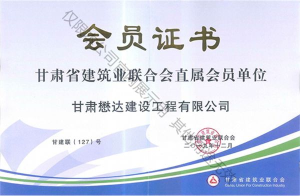 甘肅省建筑業(yè)聯(lián)合會(huì)直屬會(huì)員單位證書(shū)