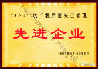 2020年度工程質(zhì)量安全管理先進(jìn)企業(yè)