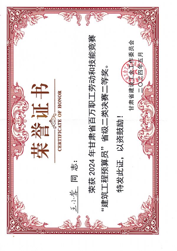 近日,2024年甘肅省百萬職工勞動和技能競賽“建筑工程預(yù)算員”省級二類決賽結(jié)果揭曉。